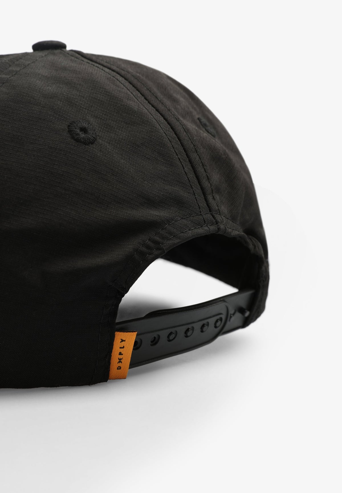 Traveler Cap Boné est une casquette réglable à cinq panneaux en nylon ripstop, avec le logo Deeply sur la visière avant et un curseur en métal à l'arrière.