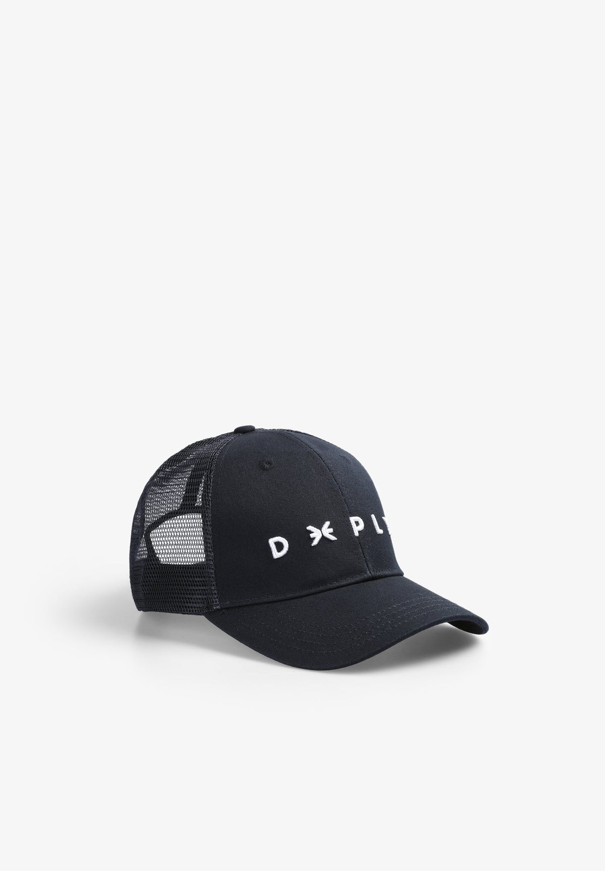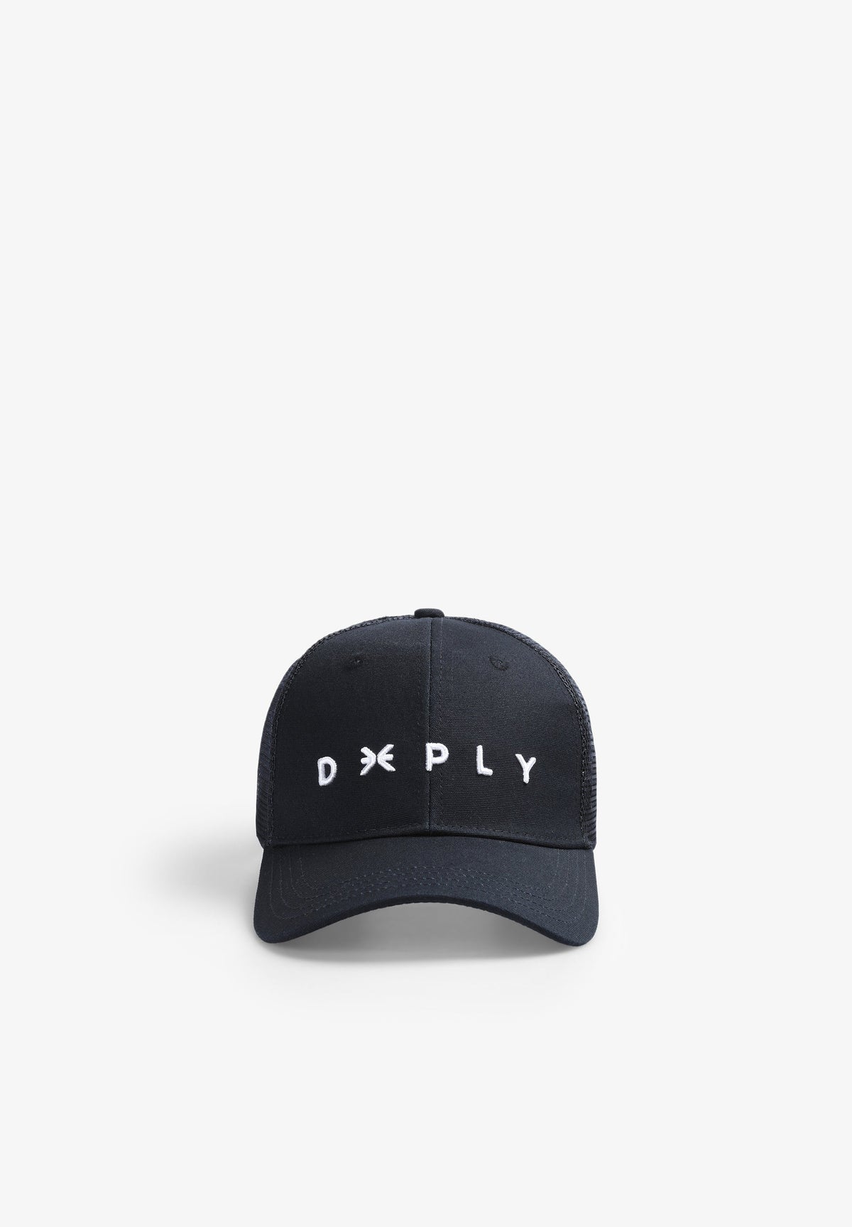 La Trucker Cap Boné est une casquette réglable à six panneaux, en coton et la partie arrière en maille ouverte respirante, avec le logo Deeply brodé sur la visière avant.
