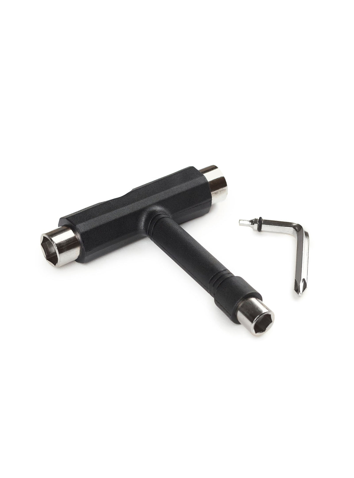 Outil en T pour serrer et desserrer le boulon central des trucks de skate en fonction des manœuvres prévues et du niveau. L'outil en T permet également de visser et dévisser les boulons des roues et des trucks.