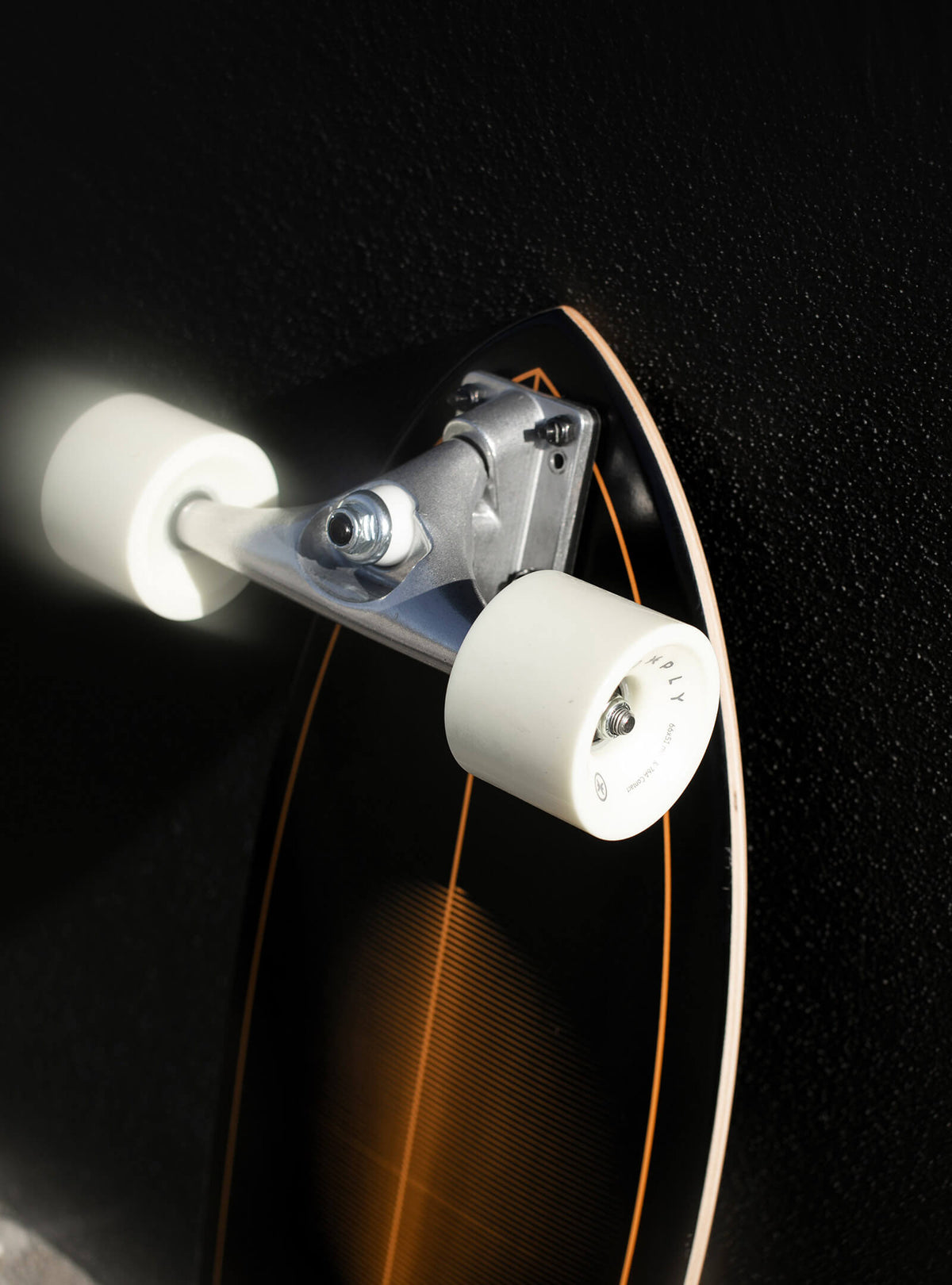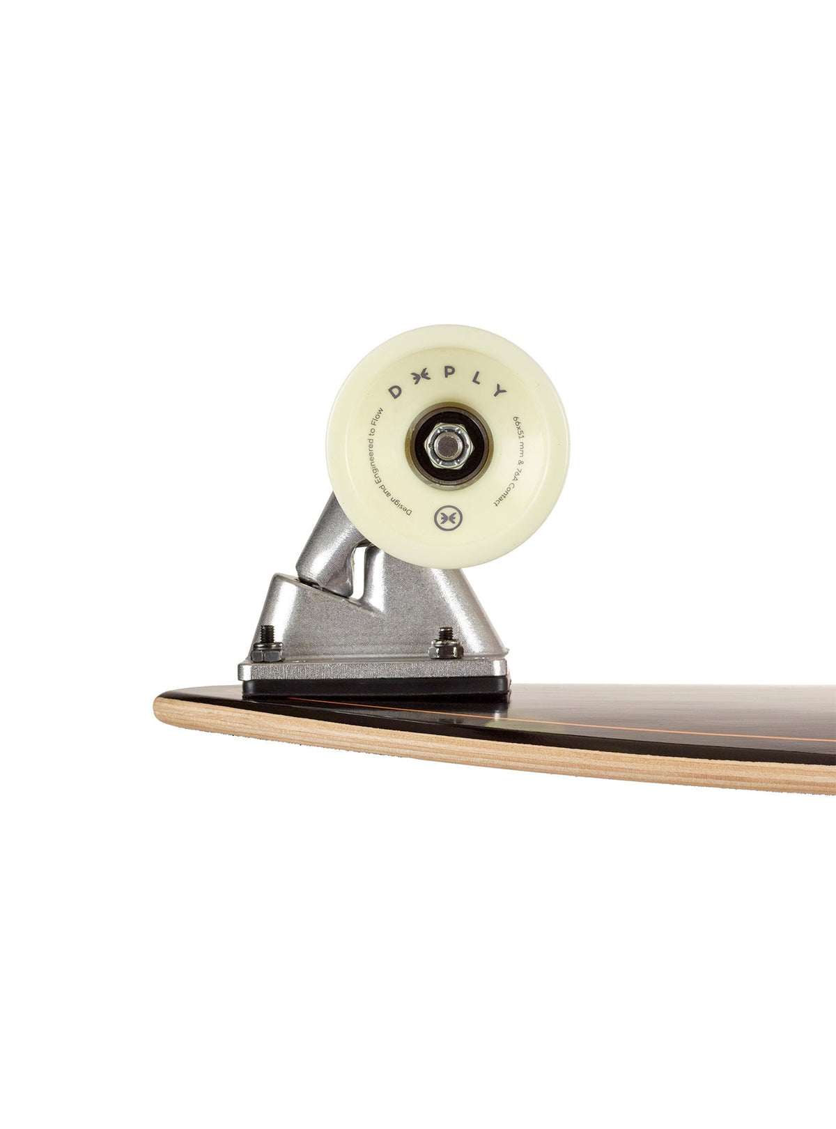 Le Deeply Sound Waves est un surf skate inspiré du shape des fish classiques, il est idéal pour continuer à progresser les jours sans vagues. Il fait 30’’ de long et 9,75’’ de large. La taille des roues est de 66x51mm avec une dureté de 80A, les roulements sont des ABEC7. La planche est composée de 7 plis d’érable canadien de qualité. Poids maximum de l'utilisateur : 110kg.