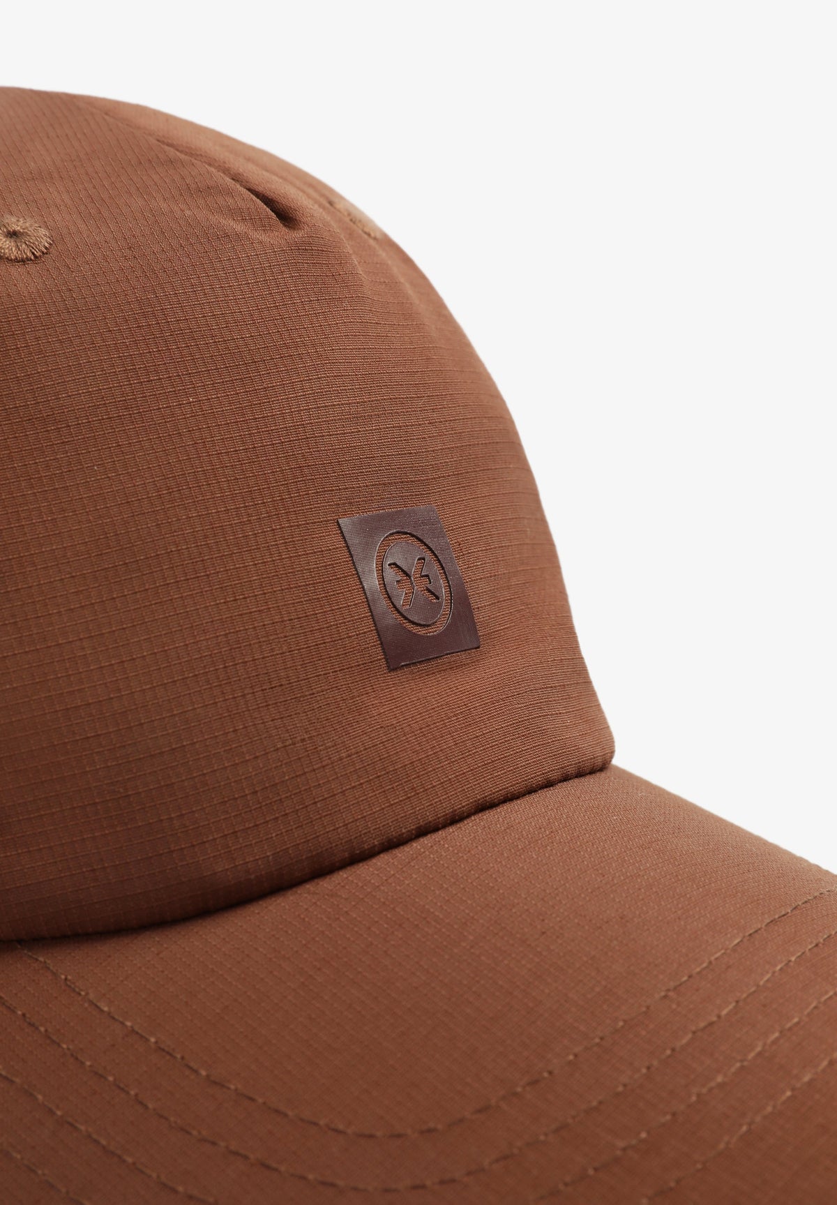 Traveler Cap Boné est une casquette réglable à cinq panneaux en nylon ripstop, avec le logo Deeply sur la visière avant et un curseur en métal à l'arrière.