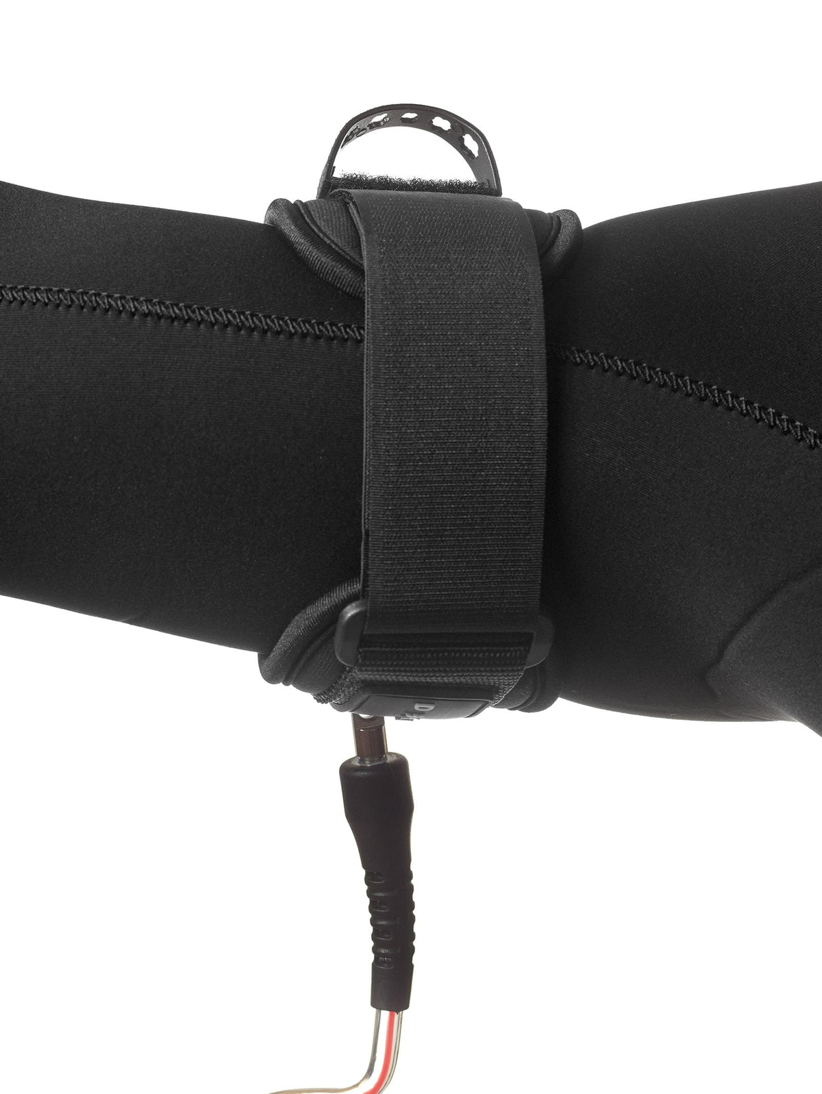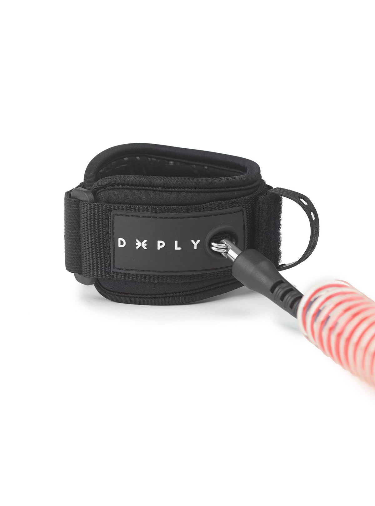 Leash biceps Deeply pour bodyboard en uréthane durable pour toutes les conditions, avec double pivot en inox et manchette en néoprène rembourré. La manchette du leash est munie d’un patch de caoutchouc à dégagement rapide en cas d’urgence.
