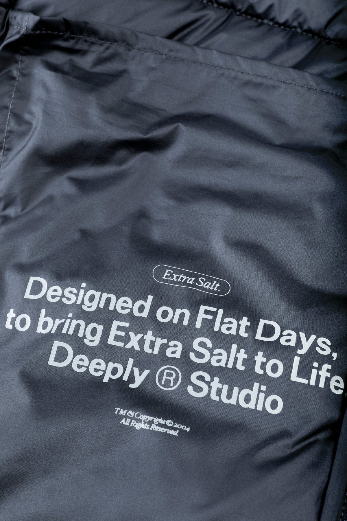 • Détail de l'étiquette contrastante Deeply en néoprène à l'arrière.