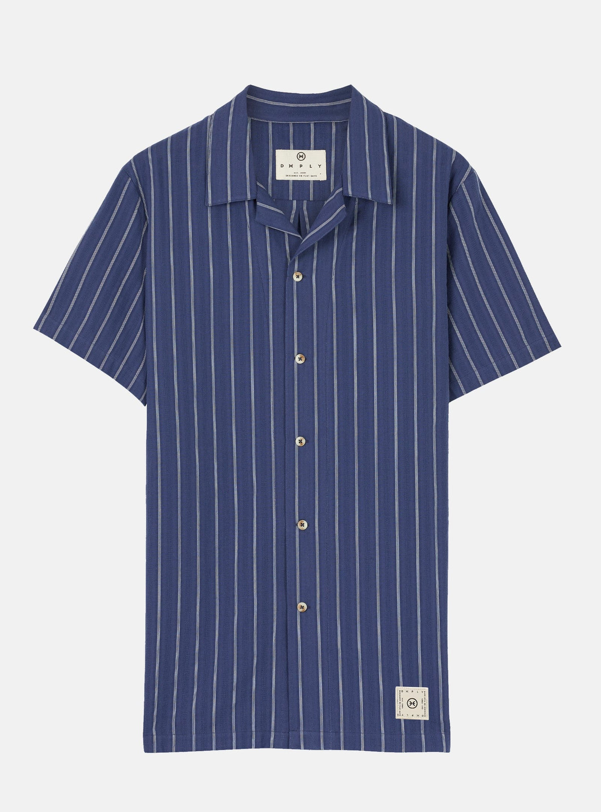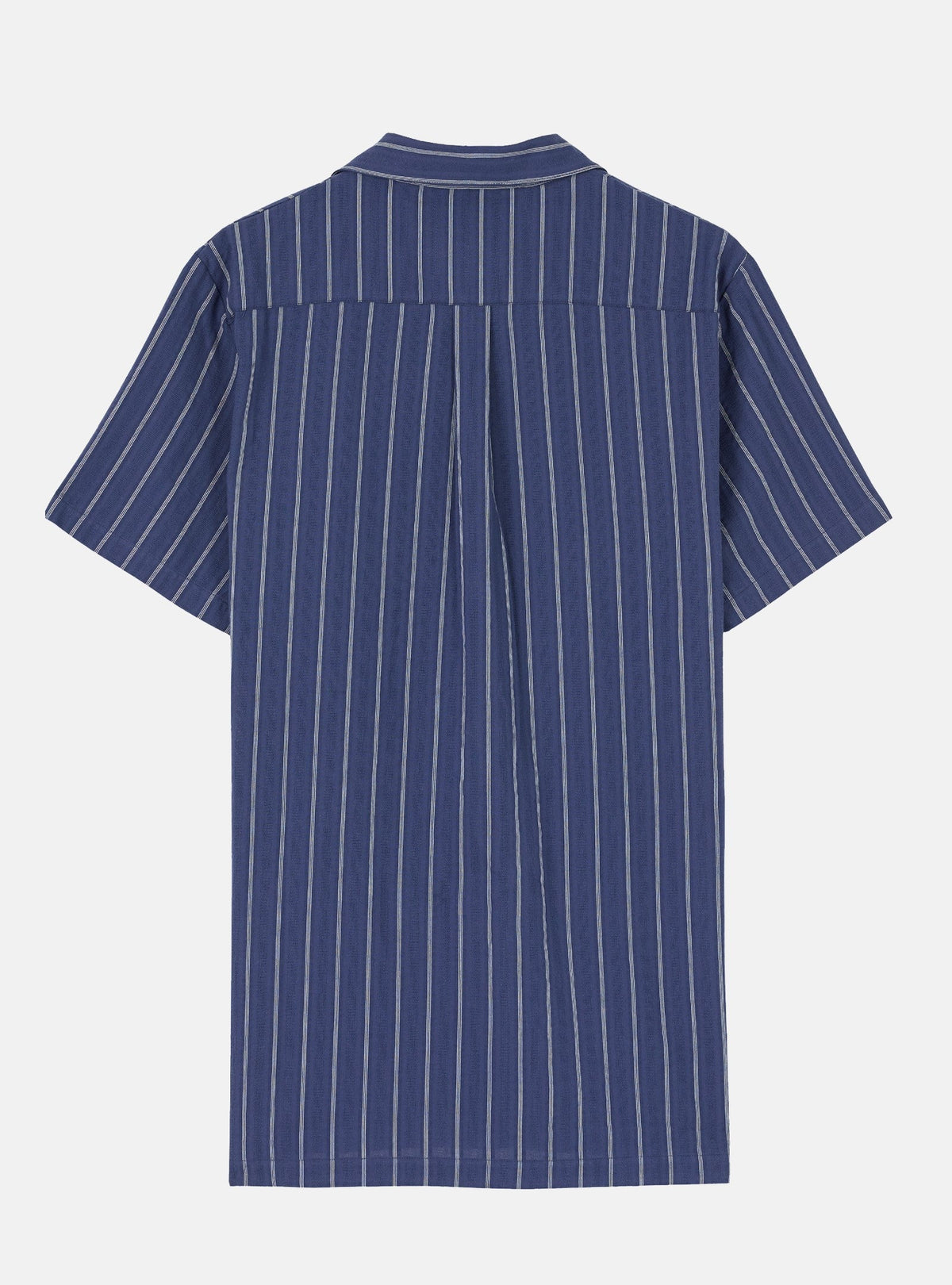 LAST SWELL Une chemise de coupe large, aérée, légère et nouvelle avec des rayures seersucker verticales. Un col tendance vintage et au-devant une patte de boutonnage bien définie avec des boutons réutilisés. Petites ouvertures latérales et un empiècement derrière régulier. Fabriqué 100 % en coton de texture tissé qui est extra doux au toucher. Des vieux boutons réutilisés et des finitions bien définies de qualité. Au-devant, un patch de la marque près de la couture de la ceinture. Elle est aussi disponible en blanc.