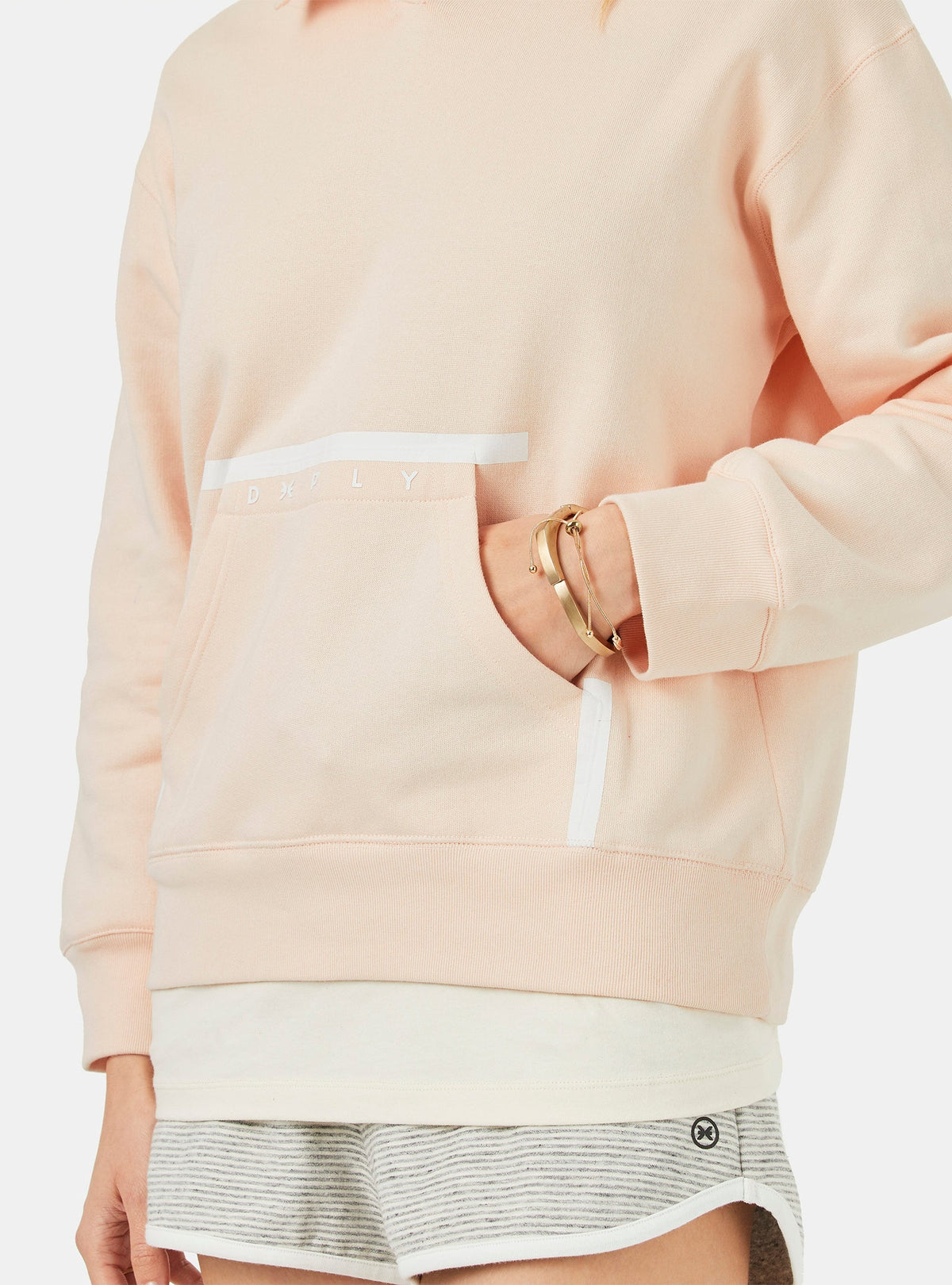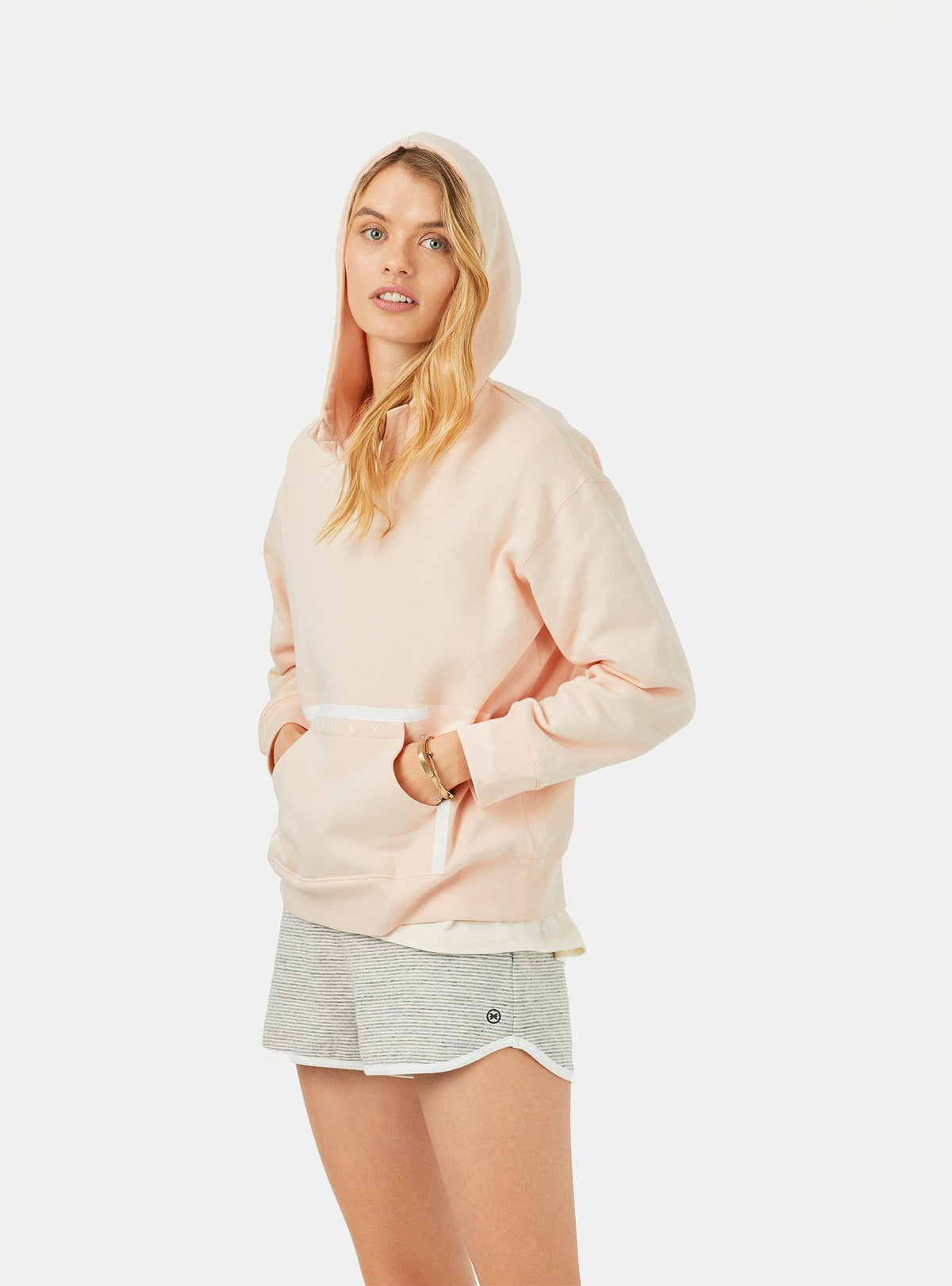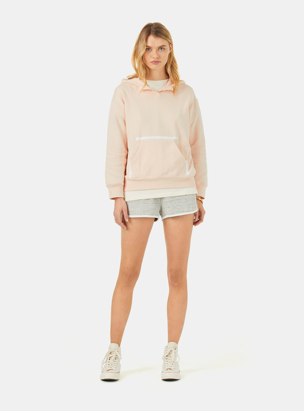 Un hoodie de coupe régulière en rose clair. Fabriqué 100 % en coton organique, qui est doux au toucher, et une texture moelleuse de 300 g à l’intérieur. Une poche kangourou plaquée pour un extra confort avec le détail d’un imprimé scellé. Au-devant la patte de boutonnage avec un détail d’une couture en zigzag. Le hoodie avec des cordons blancs du genre spaghetti et des cliquets en métal ajustables. Des finitions bien définies de qualité avec un recouvrement de la couture du cou assorti à la couleur de fond. Un imprimé de la marque sur la poche de devant. Les poignets et la ceinture sont recouverts par une bande 1 x 1 ce qui le rend plus confortable et fonctionnel. Le basique parfait bien défini avec une esthétique renouvelée.