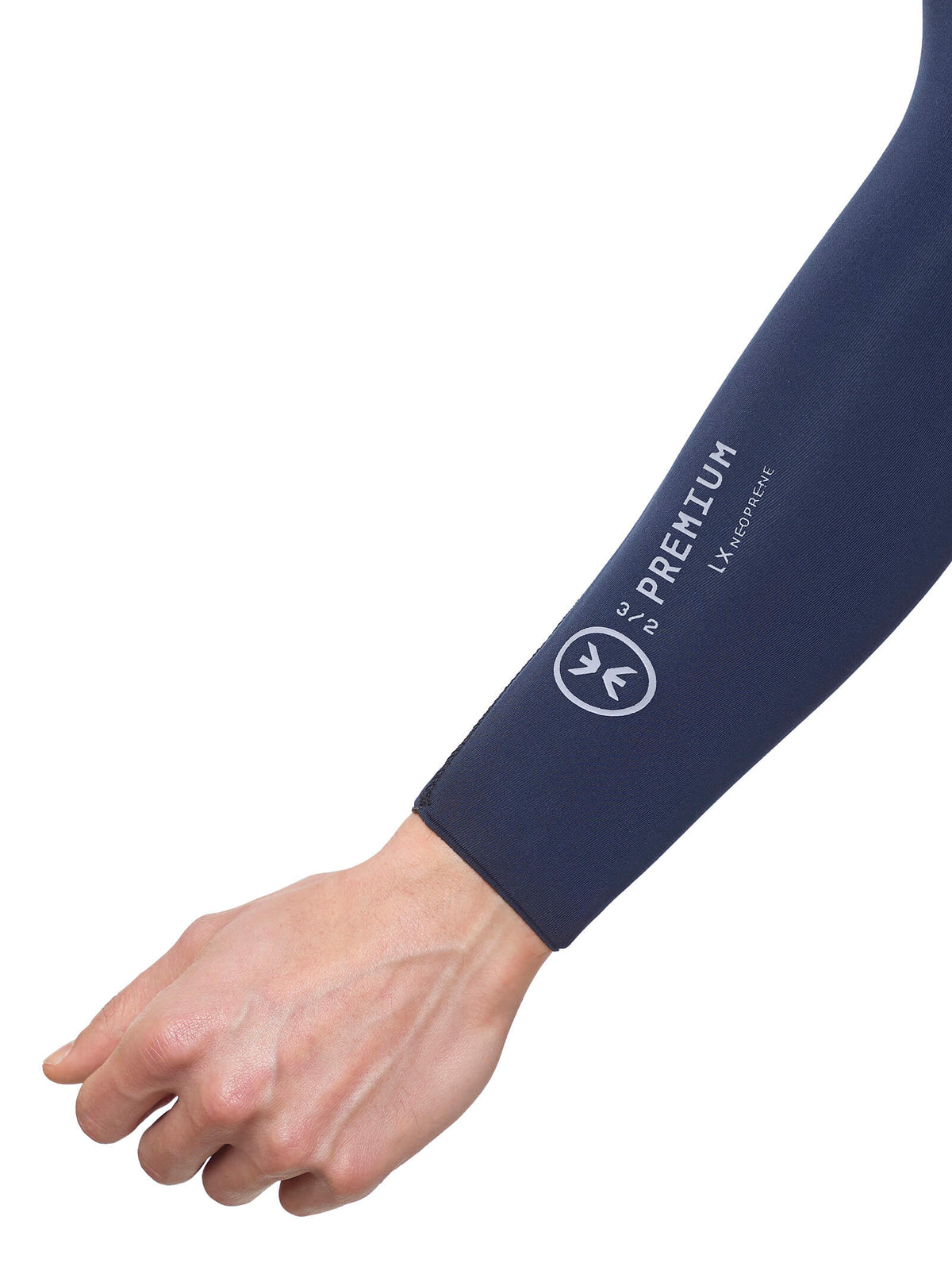 Combinaison intégrale Premium chest zip d’une épaisseur de 3/2 mm, fabriquée en néoprène LX, dotée d’un mix de néoprènes dernières générations dernières générations avec une grande flexibilité au niveau des bras et des jambes. Le néoprène écologique fabriquée à base de Limestone assure une excellente imperméabilité et la rétention de la chaleur. Les coutures cousues-collées sont étanches et renforcées intérieurement par les bandes thermo soudées ultras flexibles. Le col est fabriqué en Glideskin, matière ultra souple et confortable. La doublure intérieure est en Terry noir doux. L'ouverture du panneau en néoprène dans la zone du col sans coutures permet de mettre et d'enlever facilement la combinaison. Des genouillères à haute densité et des zones sans coutures sous les bras assurent une protection efficace et une mobilité sans restriction.