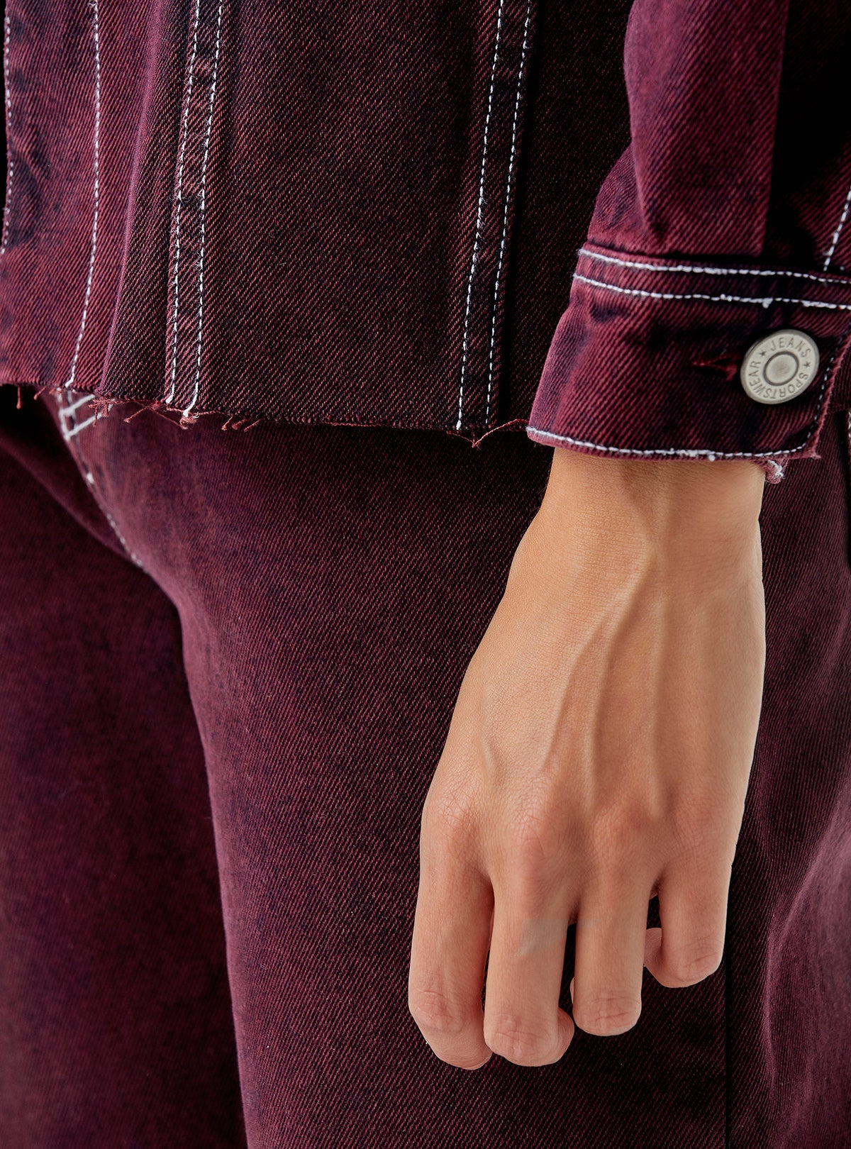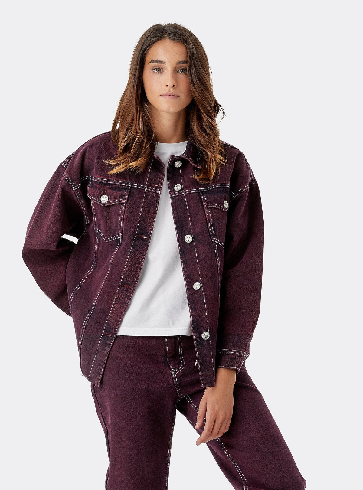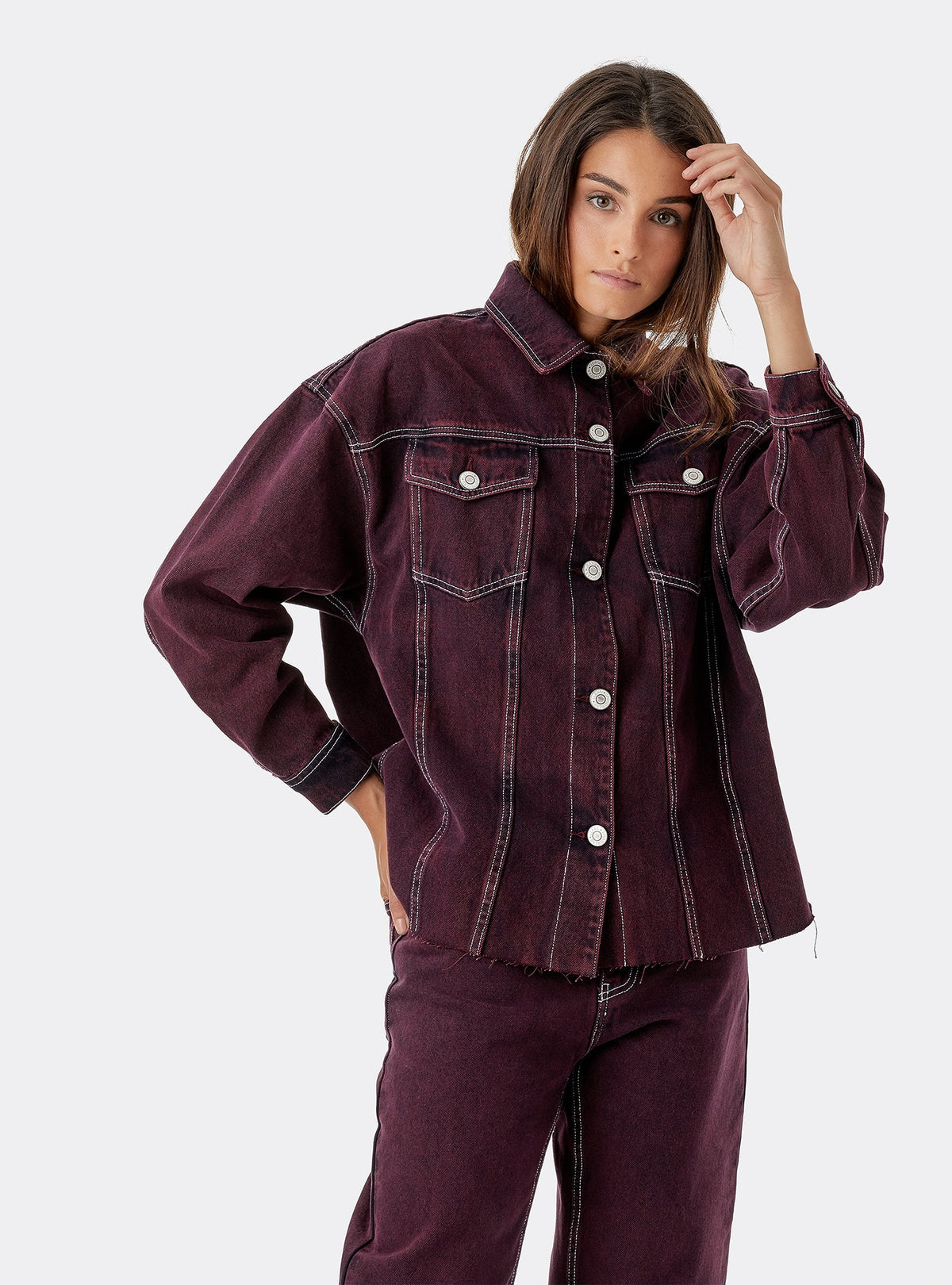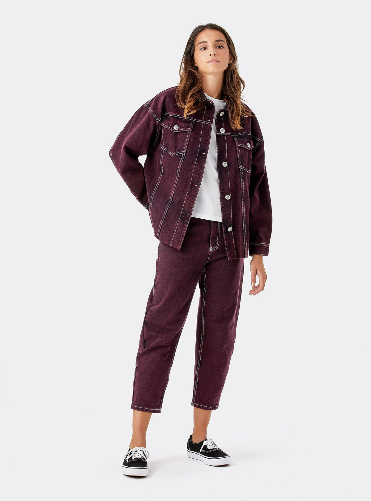 Trucker en canvas lourd avec gros points en arrière en couleur écru. Bas en coupe à fil. Coupe oversize avec épaules dénudées, cool et confortable. Conçu pour durer et ayant une intemporalité d’une saison à l’autre.
