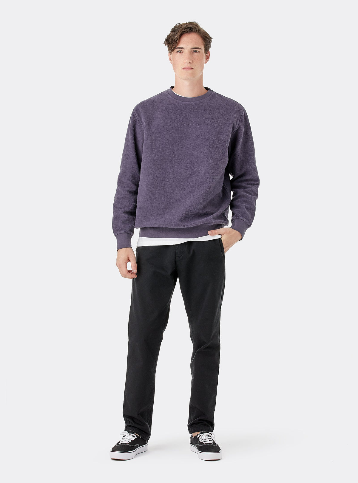 LAST SWELL Sweat d’encolure arrondie, coupe régulière et confortable, en coton organique de qualité supérieure. Le côté cardé de la maille se trouve sur le côté extérieur de la pièce, ce qui lui donne une texture riche et une sensation chaleureuse lors de son usage. Doux et confortable au toucher. Conçu pour durer et ayant une intemporalité d’une saison à l’autre.