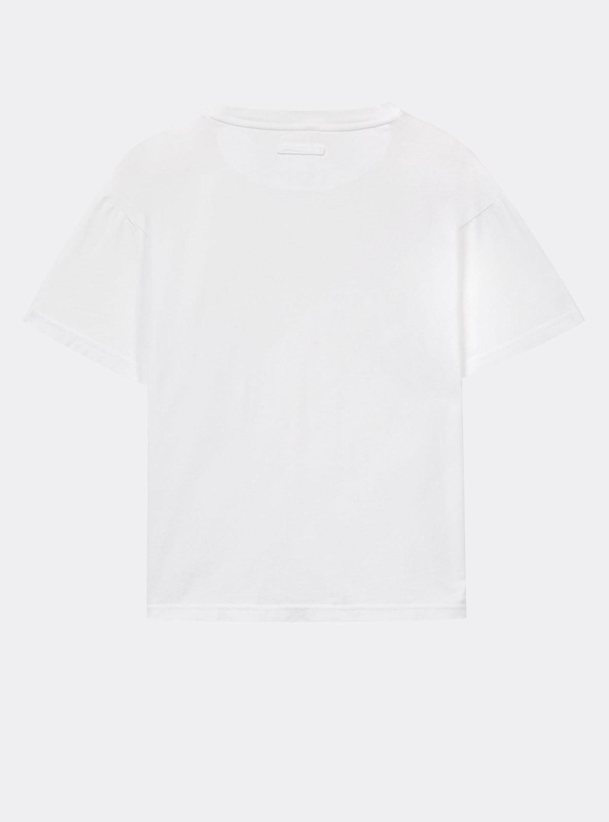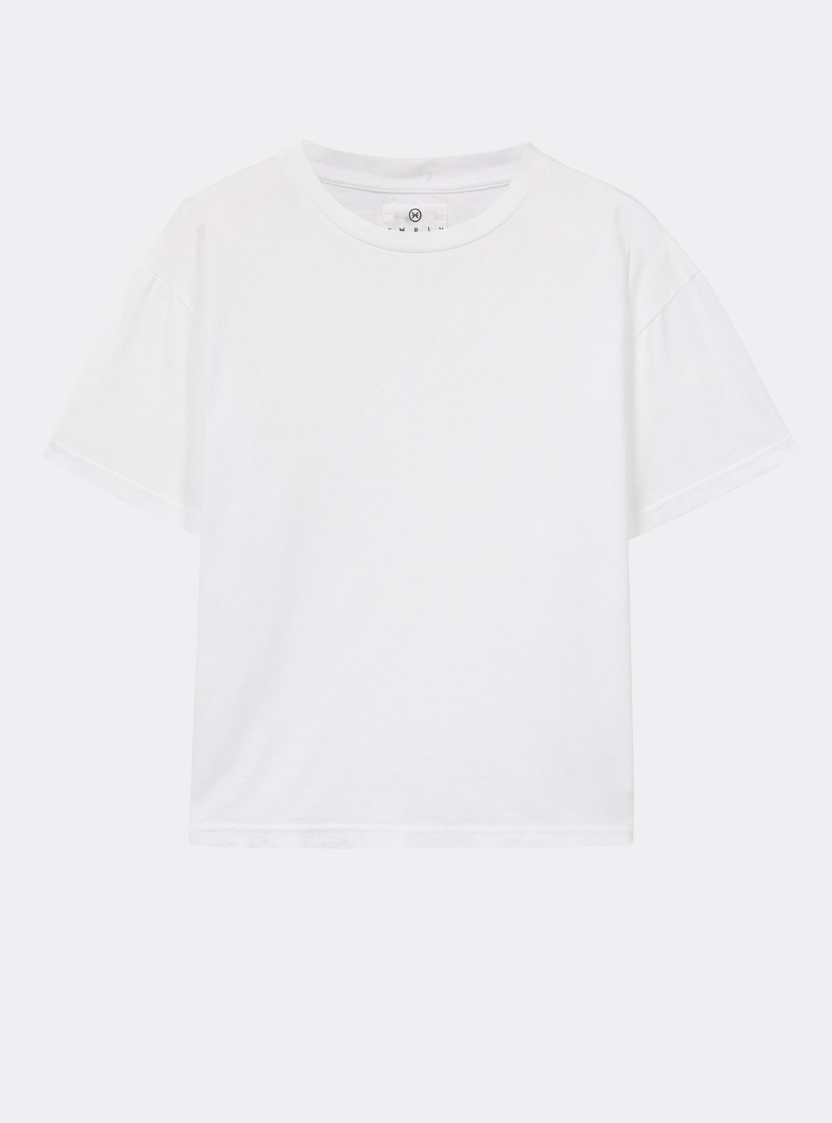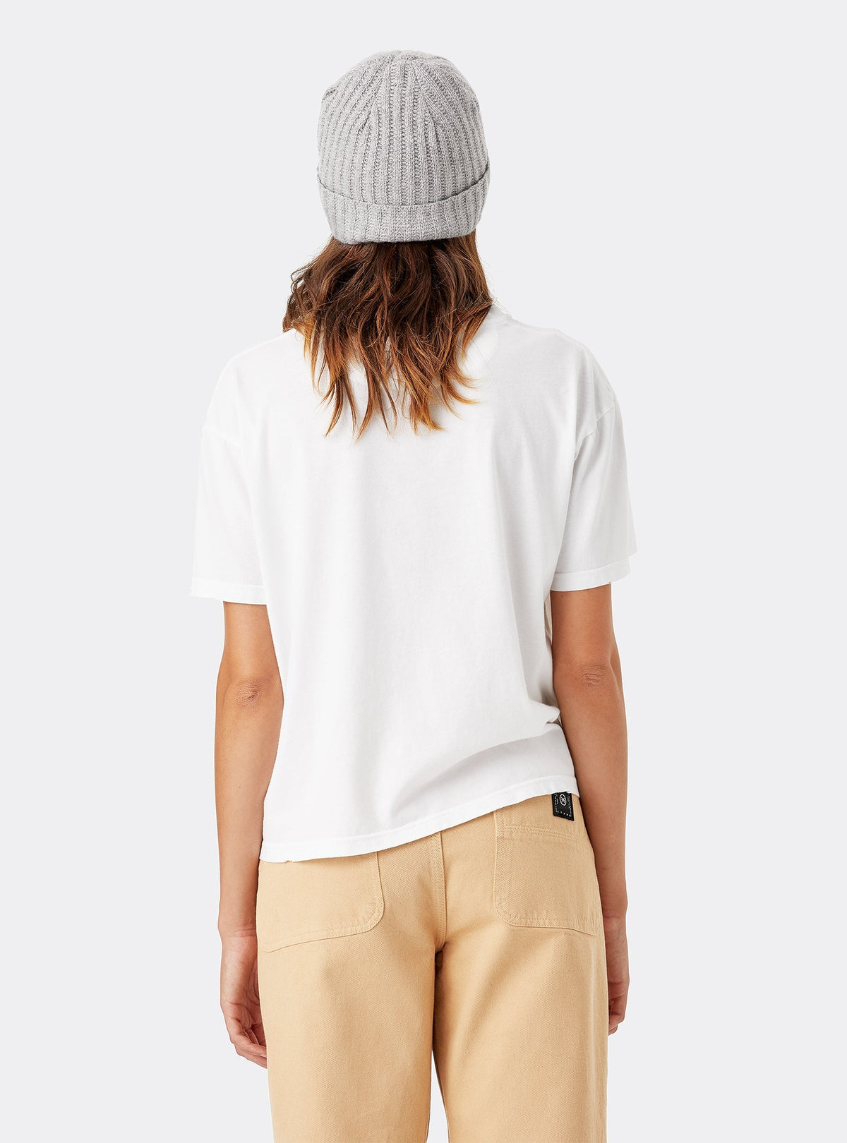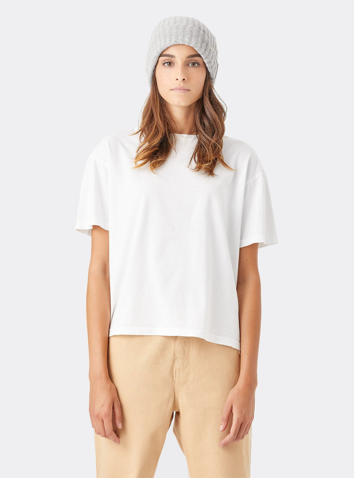 LAST SWELL T-shirt recadré, tenue décontractée, en coton organique de qualité supérieure. Doux et confortable au toucher. Finitions manuelles d’usure au niveau du col, des poignets et du bas. Conçu pour durer et ayant une intemporalité d’une saison à l’autre.
